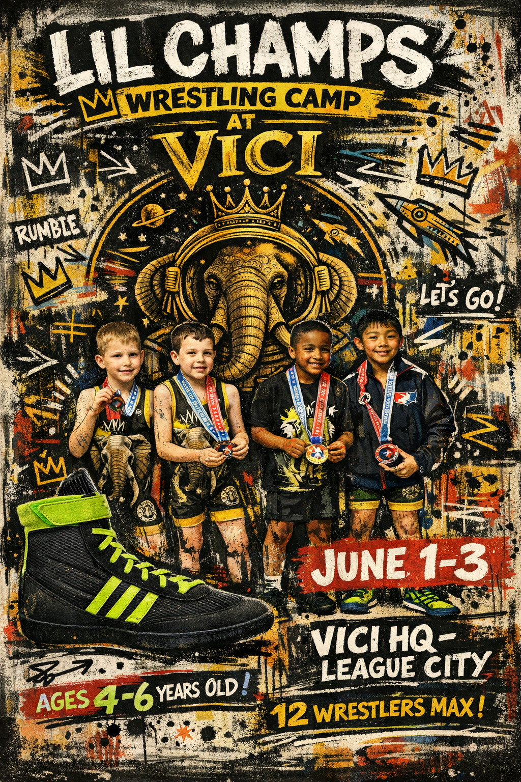 The Vici "Lil Champ" beginner summer wrestling camp is designed for new wrestlers to gain wrestling exposure, meet friends and have fun. All participants will gain a fundamental understanding of wrestling while engaging in fun team games that are guaranteed to physically challenge all students.